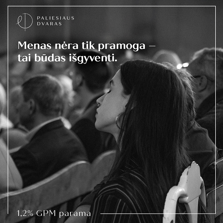 Prisidėkite prie meno ir emocinės gerovės 𝐬𝐤𝐢𝐫𝐝𝐚𝐦𝐢 𝐝𝐚𝐥𝐢̨ 𝐬𝐚𝐯𝐨 𝟏,𝟐 % 𝐆𝐏𝐌 paramos Paliesiaus dvarui – visos pajamos keliaus kultūrinių renginių organizavimo veiklai.