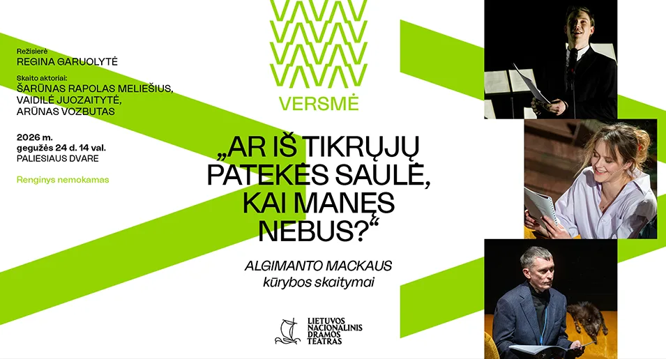 Mackaus kūrybą skaitys Lietuvos nacionalinio dramos teatro aktoriai Vaidilė Juozaitytė, Šarūnas Rapolas Meliešius, Arūnas Vozbutas, režisierė – Regina Garuolytė. Profesionalių aktorių balsai leis išgirsti Mackaus tekstų vidinę ritmiką, jų dramatišką tylą ir egzistencinį intensyvumą, o pats vakaras taps ne tik literatūriniu skaitymu, bet ir gyvu susitikimu su poeto kūryba. Po skaitymų vyks susitikimas ir pokalbis su kūrybine komanda, kurį moderuos dramaturgė Sigita Ivaškaitė.