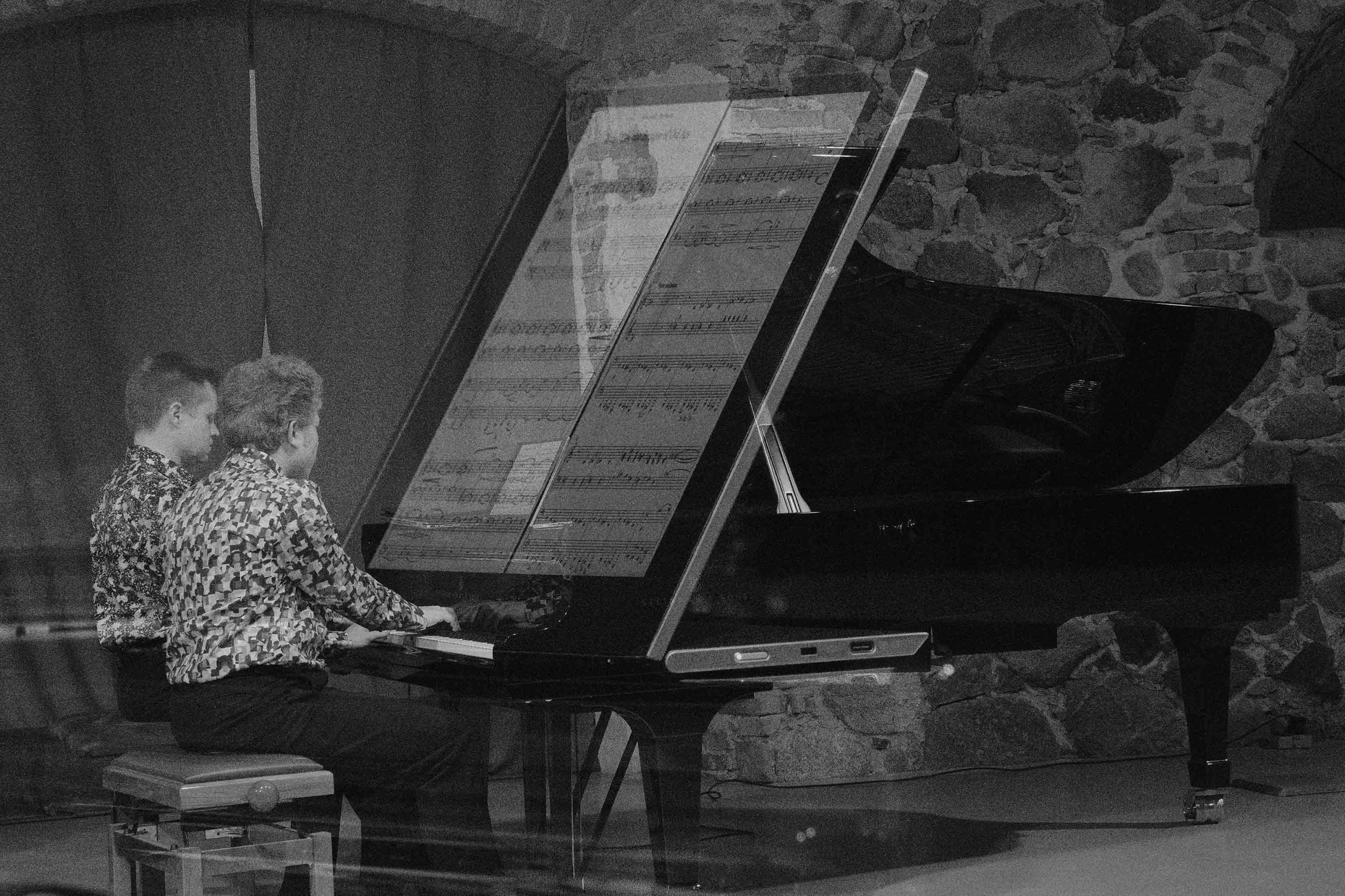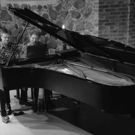 Keletas akimirkų iš Belgijos pianistų dueto „Duo b!z’art“ koncerto „Across the Stars“ Paliesiaus dvare.