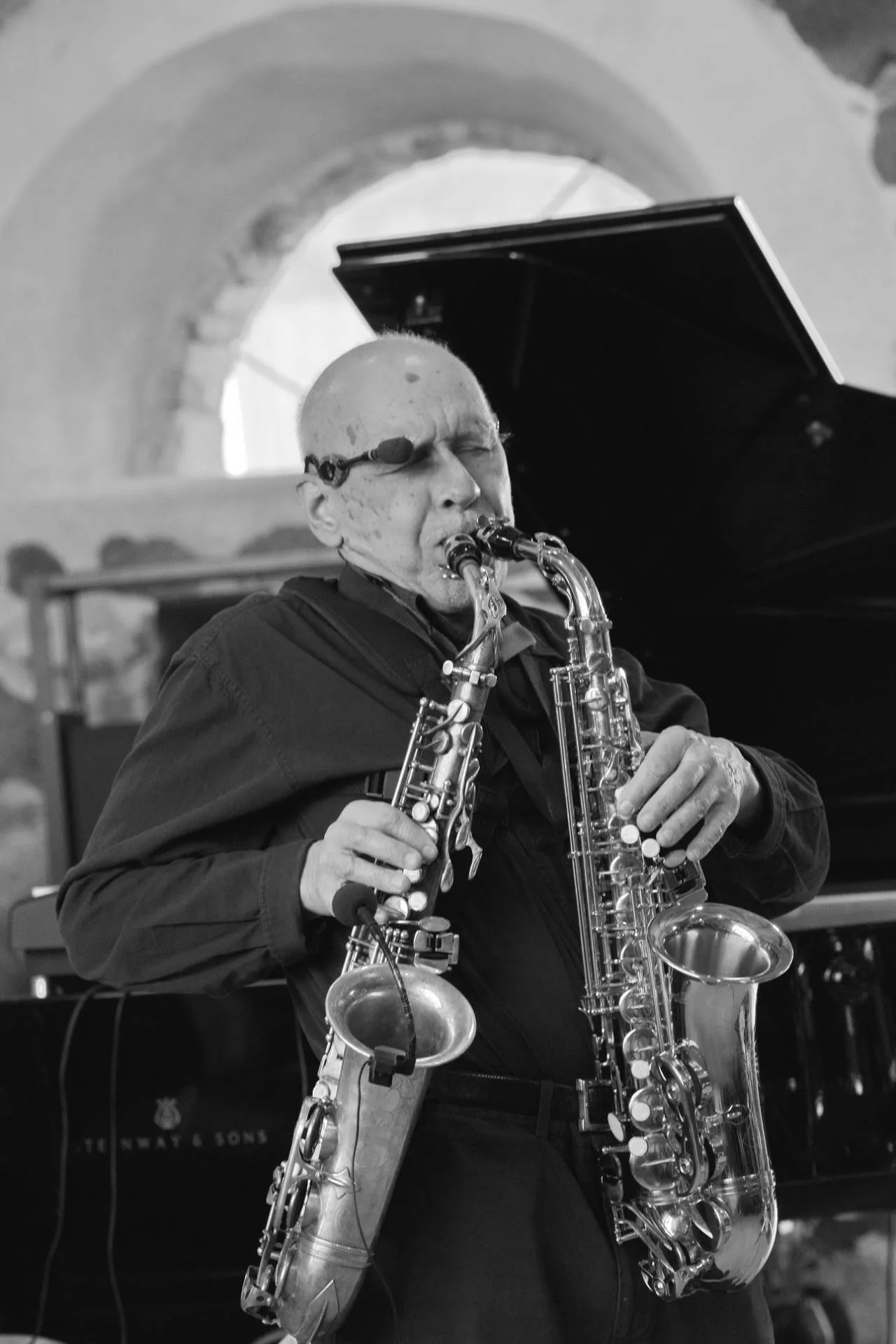 „La Sonata Grande”: kone pusantros valandos Paliesiaus dvare non stop trukęs džiazo meistrų Vladimiro Čekasino ir Vladimiro Tarasovo koncertas pribloškė vitališka energija – tarsi būčiau keliavęs su Jacko Kerouaco herojais po Teksaso dykumas, vedamas žynių, šamanų, burtininkų ar tiesiog tobulus garsus ir garsų kaskadas gaminančių išminčių. Per septyniasdešimt perkopę vyrukai demonstravo tai, ką prancūzai vadina élan vital (gyvenimo polėkiu) ir ko stokoja net ir perpus už juos jaunesni. Lengvai improvizuoti, vienam iš karto pučiant du saksofonus, o kitam mušant n+k būgnų būgnelių, – veiksmai, pasiduodantys tik dviem Vladimirams: Čekasinui ir Tarasovui. Pirmąkart taip aiškiai pajutau, kad man laaaabai patinka toks džiazas.” Nuotraukų autorius – Algis Jakštas.