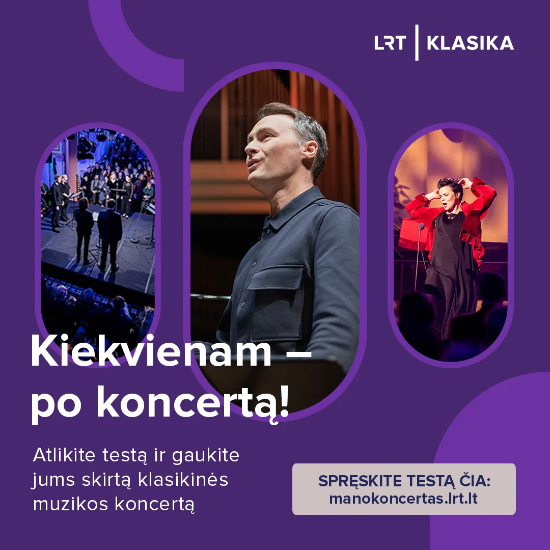 Kviečiame atsakyti į kelis trumpus klausimus ir sužinoti, koks klasikinės muzikos klausytojas esate. Kiekvienam iš jūsų parengėme kruopščiai atrinktas LRT KLASIKOS koncertų rekomendacijas iš daugiau nei 1 000 koncertų transliuojamų kasmet. O visus LRT KLASIKA siūlomus koncertus galėsite sau patogiu metu klausytis LRT radiotekoje.