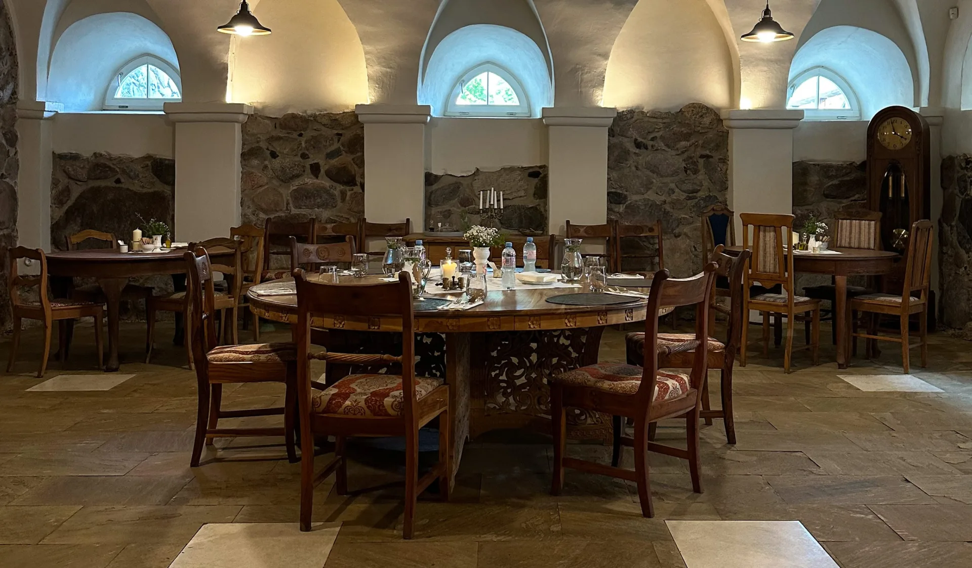 * į nuomos kainą įeina serviravimas: stalai dengiami ir puošiami.