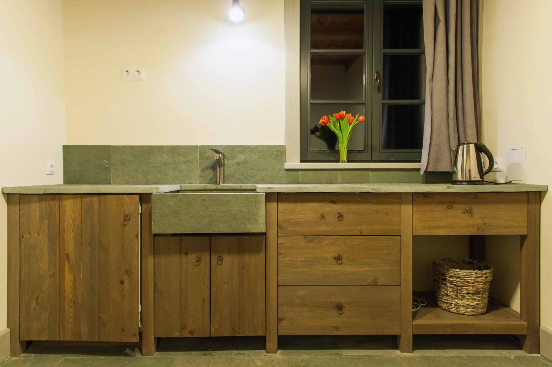 Šis kambarys mediniame Mėlynajame name erdvus ir komfortiškas. Kambaryje yra kone viskas, ko gali prireikti, norint atsipalaiduoti, užkąsti, pasidaryti arbatos, kadangi yra virtuvėlė, krosnelė, vonia. Tobula vieta dviem žmonėms – arba daugiau, nes galime pristatyti papildomą lovą! Čia taip pat galite apsistoti su augintiniais.