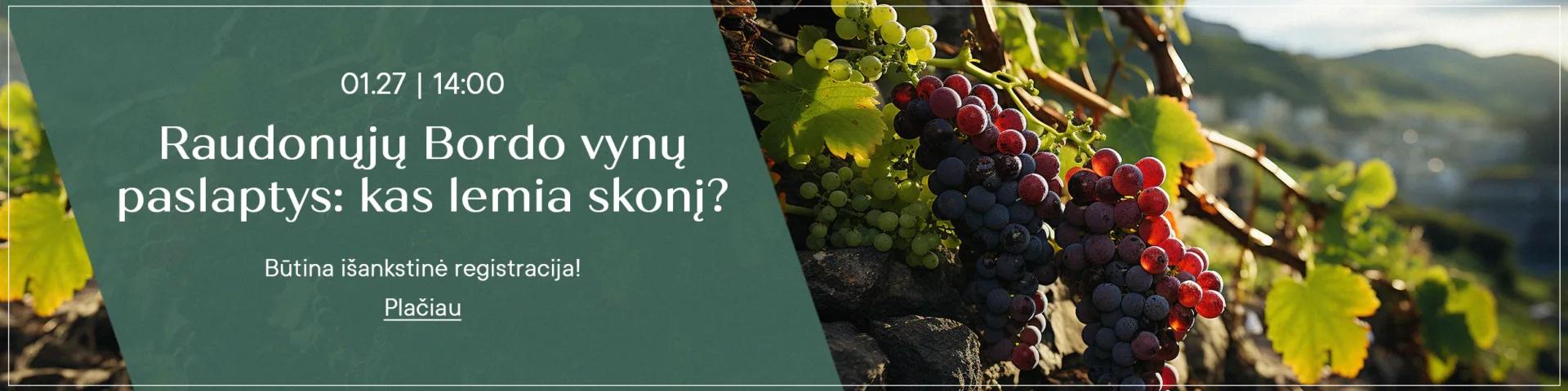 Vyno pažinimo popietės metu pasimėgausite 5 skirtingais raudonaisiais Bordo vynais, apie kurių gamybos ir skonių subtilumus papasakos gėrimų ekspertas Juozas Kabašinskas.