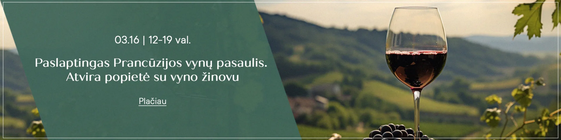 Norintieji galės paragauti net 5 skirtingų Prancūzijos regionų vynų ir įsitikinti skirtingais jų subtilumais, taip pat išgirsti daugybę įdomybių apie ragaujamus vynus – kodėl vieno skonis toks, o kito kitoks, ką lemia vynuogės, klimatas, brandinimas. O jei ragauti nesinori, smalsu tik žinoti – ekspertas patars nemokamai!
