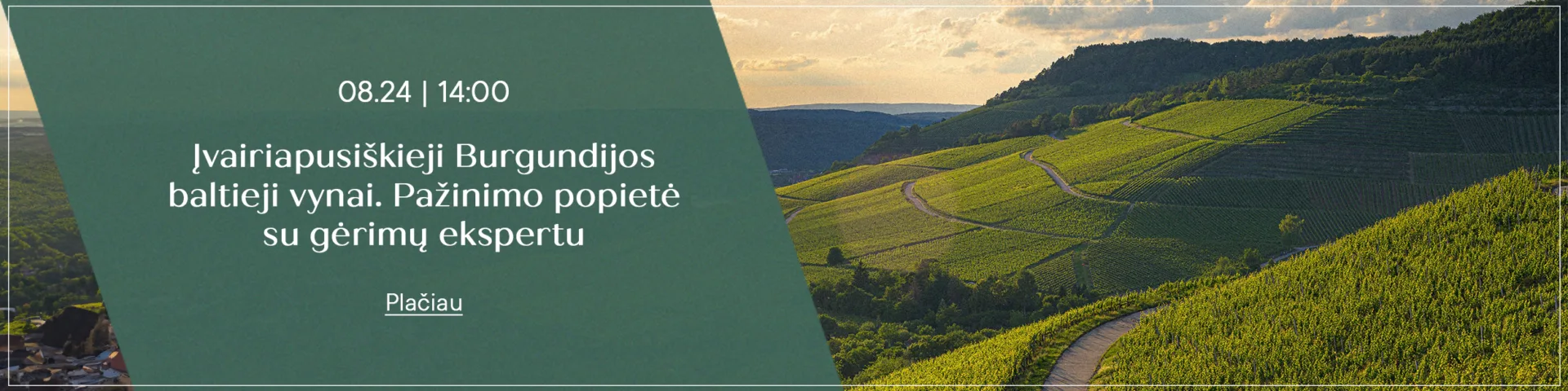 Kviečiame sužinoti daugiau Burgundijos baltųjų vynų degustacijoje! Pažinimo popietės metu nuo 14 val. dvaro vyno rūsyje Jūsų lauks gėrimų žinovas Juozas Kabašinskas, kuris atskleis vynų paslaptis ir padės atrasti naujus skonius. Degustuosite 7 skirtingus baltuosius vynus. Įsitikinkite jų skonių subtilumais!