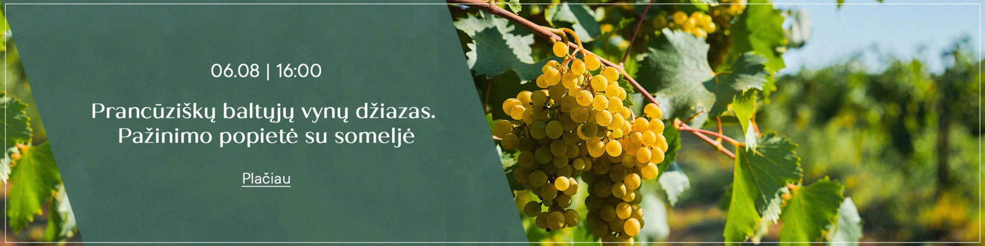 Kviečiame sudalyvauti prancūziškų baltųjų vynų pažinimo popietėje su vynų muzikos ekspertu – someljė, tikru vynininkystės profesionalu. Someljė padės jums išgirsti penkiuose baltuosiuose vynuose iš penkių skirtingų Prancūzijos regionų (Bordo, Burgundijos, Provanso, Luaros slėnio ir Elzaso) visus skonio subtilumus ir pasimėgauti skonių sąskambiu.