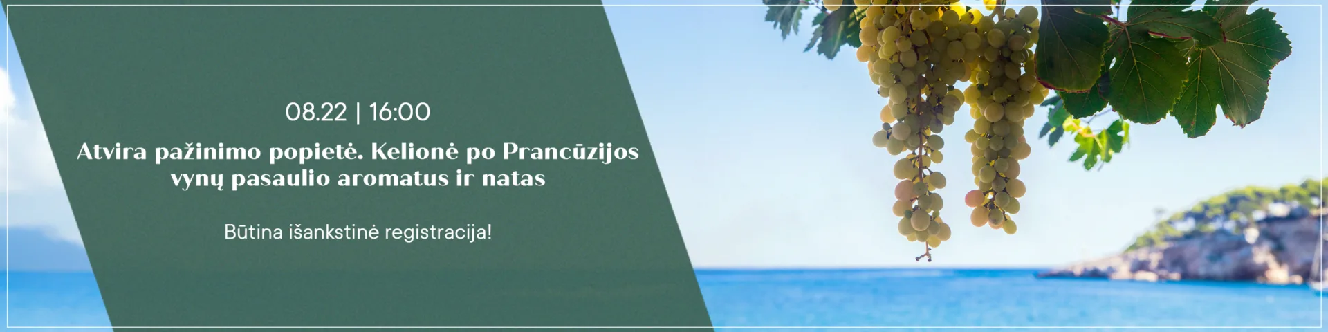 Jūsų laukia jauki kelionė po Prancūzijos vynų pasaulį drauge su gėrimų žinovu, kuris atskleis prancūziškų vynų subtilybes ir atsakys į visus rūpimus klausimus. Keliausime nuo Prancūzijos šiaurės iki pietų, stabtelėdami patyrinėti įvairių regionų vynų, jų skirtingų aromatų ir paslėptų skonių.