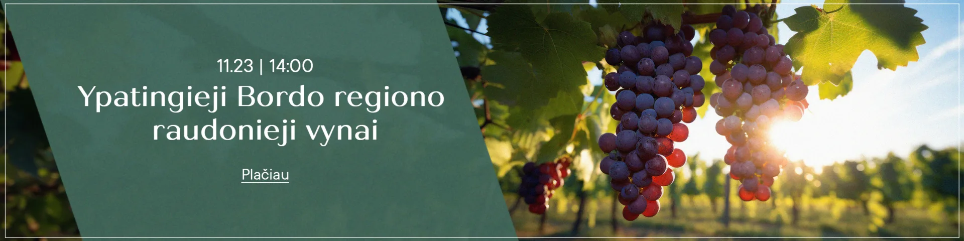 Dideliame Bordo vyndarystės regione yra daug subregionų, kuriuose skiriasi dirvožemiai ir klimatas, todėl ir vynų gamyba bei skoniai. Pažinimo popietėje Paliesiaus dvare kviečiame pasimėgauti net 8 skirtingais Bordo raudonaisiais vynais ir patyrinėti jų skonių subtilybes kartu su gėrimų ekspertu!