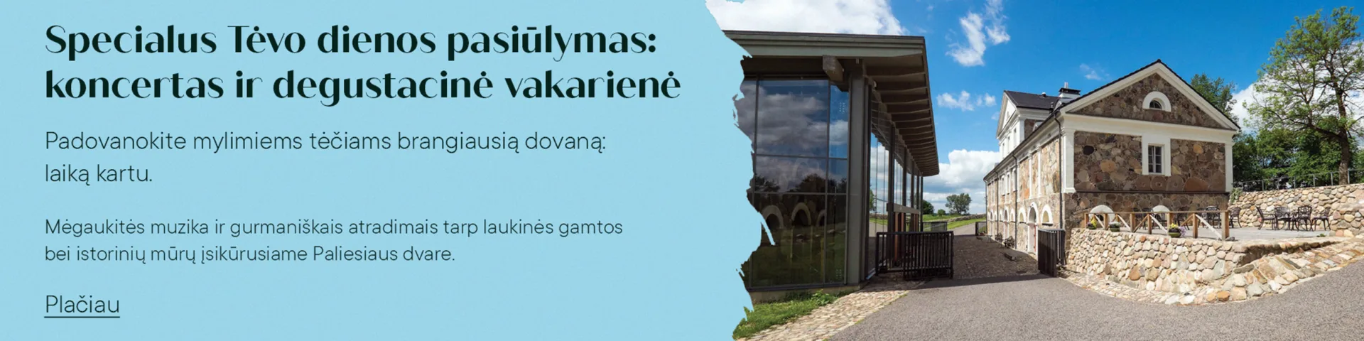 Turime Jums ypatingą pasiūlymą: mėgaukitės muzika ir gurmaniškais atradimais tarp laukinės gamtos bei istorinių mūrų įsikūrusiame Paliesiaus dvare. Į pasiūlymą įeina penkių patiekalų degustacinė vakarienė ir bilietas į norimą koncertą: įspūdingą klasikinį smuikininko Vilhelmo Čepinskio, violončelininkės Elenos Daunytės ir Šiaulių kamerinio orkestro „Camerata Solaris“ koncertą gegužės 31 d. arba į džiazą ir baroką supinantį pianisto Viktoro Paukštelio ir perkusininko Vladimir Tarasov pasirodymą birželio 7 d.