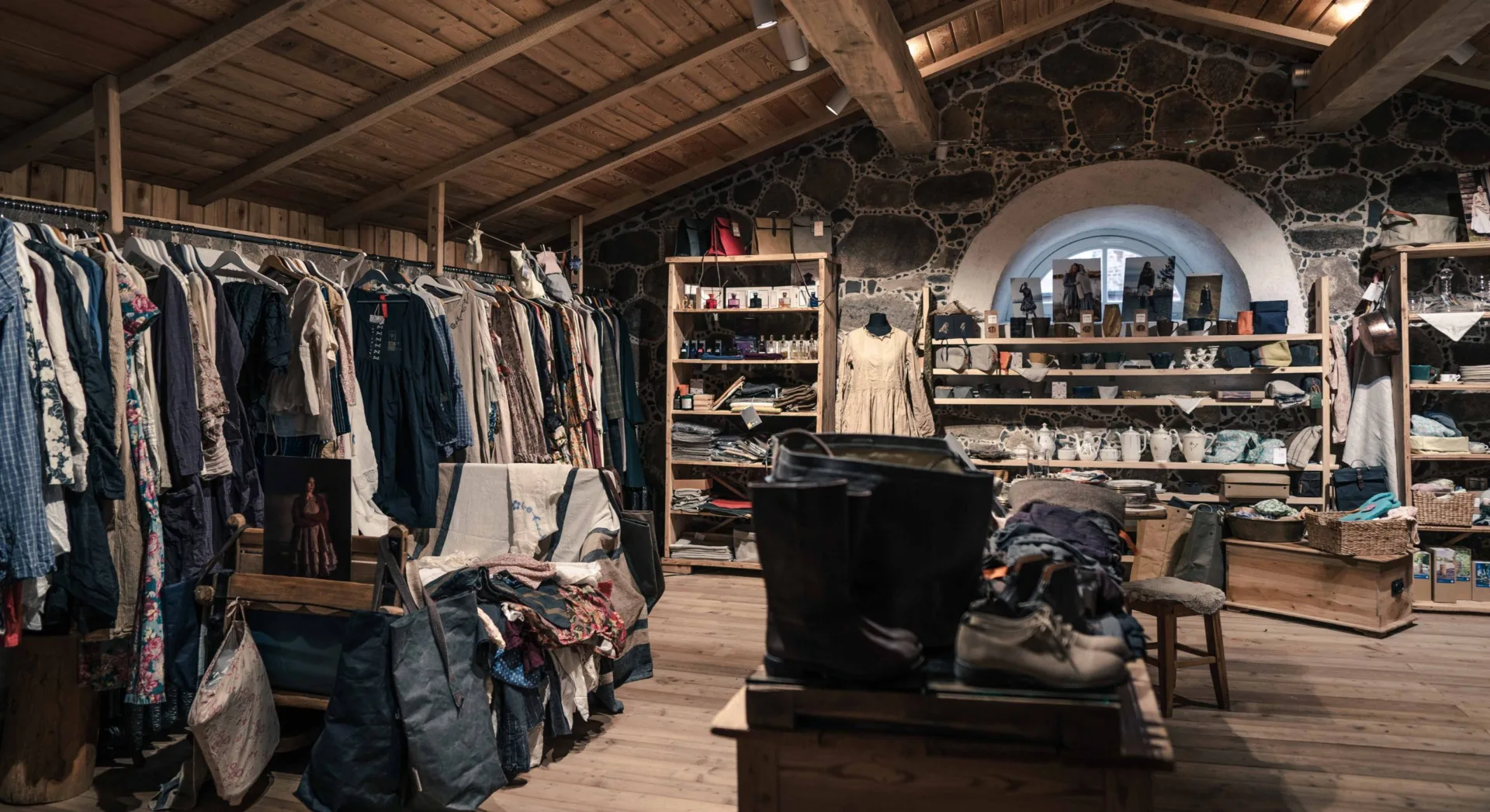 Parduotuvėje rasite dar daugiau istorijų ir grožybių iš visų pasaulio kampelių: kvapnių Paliesiaus kepyklėlės bandelių, švedų dizainerės Ewa i Walla aprangos kolekciją, nišinių kvepalų, rankų darbo rytietiškų kilimų, autorinės keramikos ir dar daug ko.