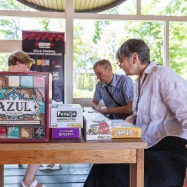 - Tadas Kastanauskas, ATEIK IR ŽAISK organizatorius bei stalo žaidimų kūrėjas ir Dmitrijus Babičius, vaizdo ir stalo žaidimų kūrėjas, pasidalins patirtimi, kaip kuriami stalo žaidimai, kaip gimsta idėja ir kokį kelią ji nueina iki tol, kol yra realizuojama iki galo ir mes jau galime žaisti. Supažindins su žaidimų įvairove, naujausiais žaidimais, tendencijomis, atsakys į klausimus.