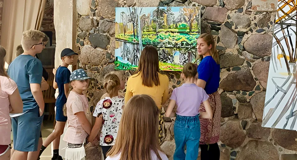 Paliesiaus dvare liepos 19-osios popietę šurmuliavo svečiai – meno rezidencijoje „Skambančios drobės“ kuriančius menininkus aplankė dar vienas būrys Ignalinos regiono jaunimo. Smalsūs ir žingeidūs mokiniai domėjosi, kaip gimsta tapybos darbai, kodėl menininkai renkasi vienokias ar kitokias spalvas, kaip jos atspindi pačius menininkus ir jų mintis… Kadangi meno rezidencijos dalyviai, tapytojai Mykolė Ganusauskaitė, Ségolène Kan iš Prancūzijos ir Viktoras Paukštelis, Paliesiaus dvare kuria jau penktą dieną, daugelis paveikslų jau beveik baigti. Paveikslams suteikiami pavadinimai, menininkai gali konkrečiau apibūdinti savo idėjas, mintis bei jausmus, kurie atsispindi darbuose.