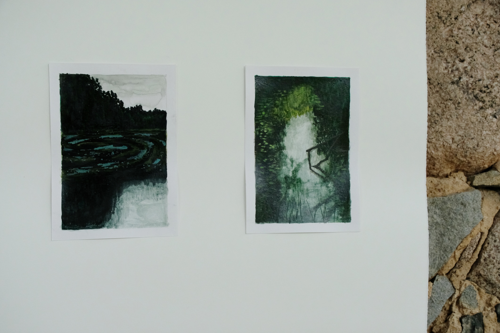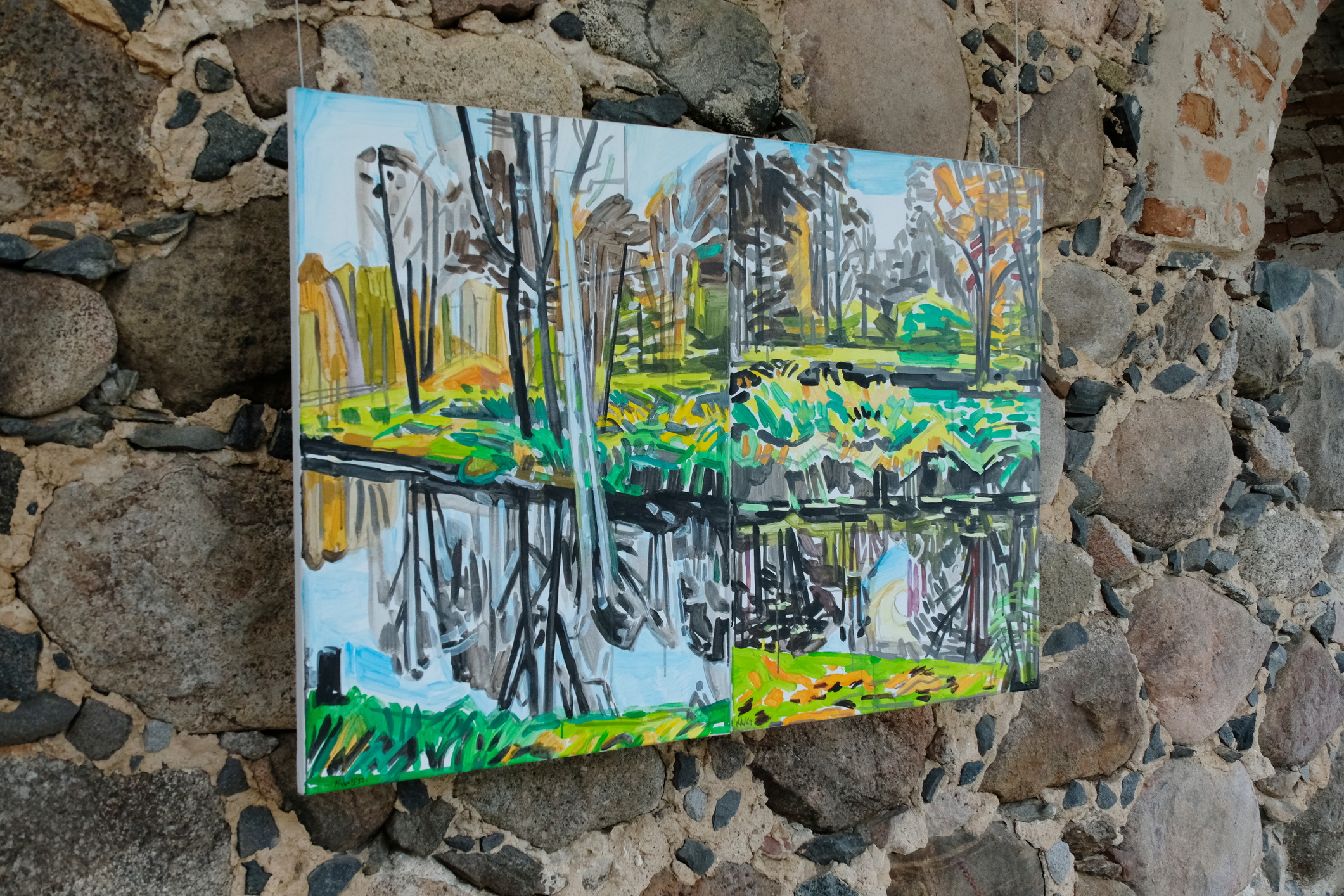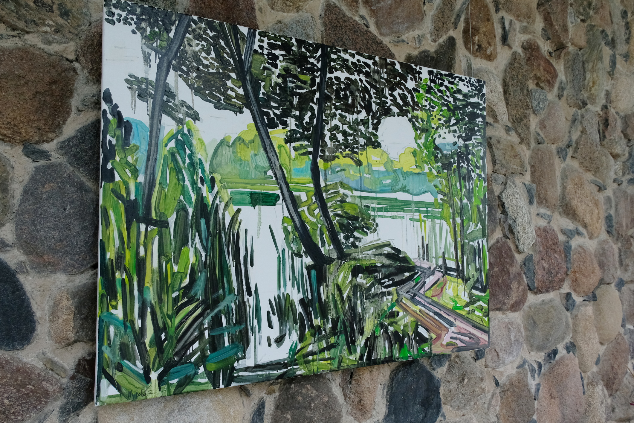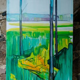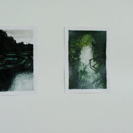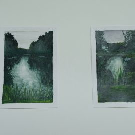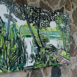 Meno rezidencijoje „Skambančios drobės“ menininkų sukurti darbai įsikūrė parodos ekspozicijoje Paliesiaus dvaro „Pasagos“ salėje. Kiekvienas čia apsilankęs gali neskubėdamas ir atidžiai studijuoti menininkų Mykolės Ganusauskaitės, Ségolène Kan iš Prancūzijos ir Viktoro Paukštelio per aštuonis rezidencijos dienas realizuotus sumanymus. Mykolė ir Ségolène įkvėpimo savo kūrybai, peizažams ieško gamtoje. Menininkės daug keliavo po Paliesiaus dvaro apylinkes, fotografavo, žavėjosi laukine gamta, išlikusiais civilizacijos mažai paliestais kaimais, autentiškomis sodybomis, tvyrančiomis paslaptingomis pelkėmis…Parodos žiūrovai galės įvertinti, kaip krašto gamta skirtingai atsispindi menininkių kūriniuose. Menotyrininkės prof. Ramintos Jurėnaitaitės anotacija ir meistriškai pateikta darbų ekspozicija leis pajausti meno rezidencijoje tvyrojusią kūrybingą atmosferą, giliau suprasti sukurtus kūrinius. Tapytojas ir pianistas Viktoras Paukštelis, anot menotyrininkės, savo paveikslams skirtingai nei šios dvi menininkės, įkvėpimo ieško ne gamtoje, bet dailės istorijoje.
