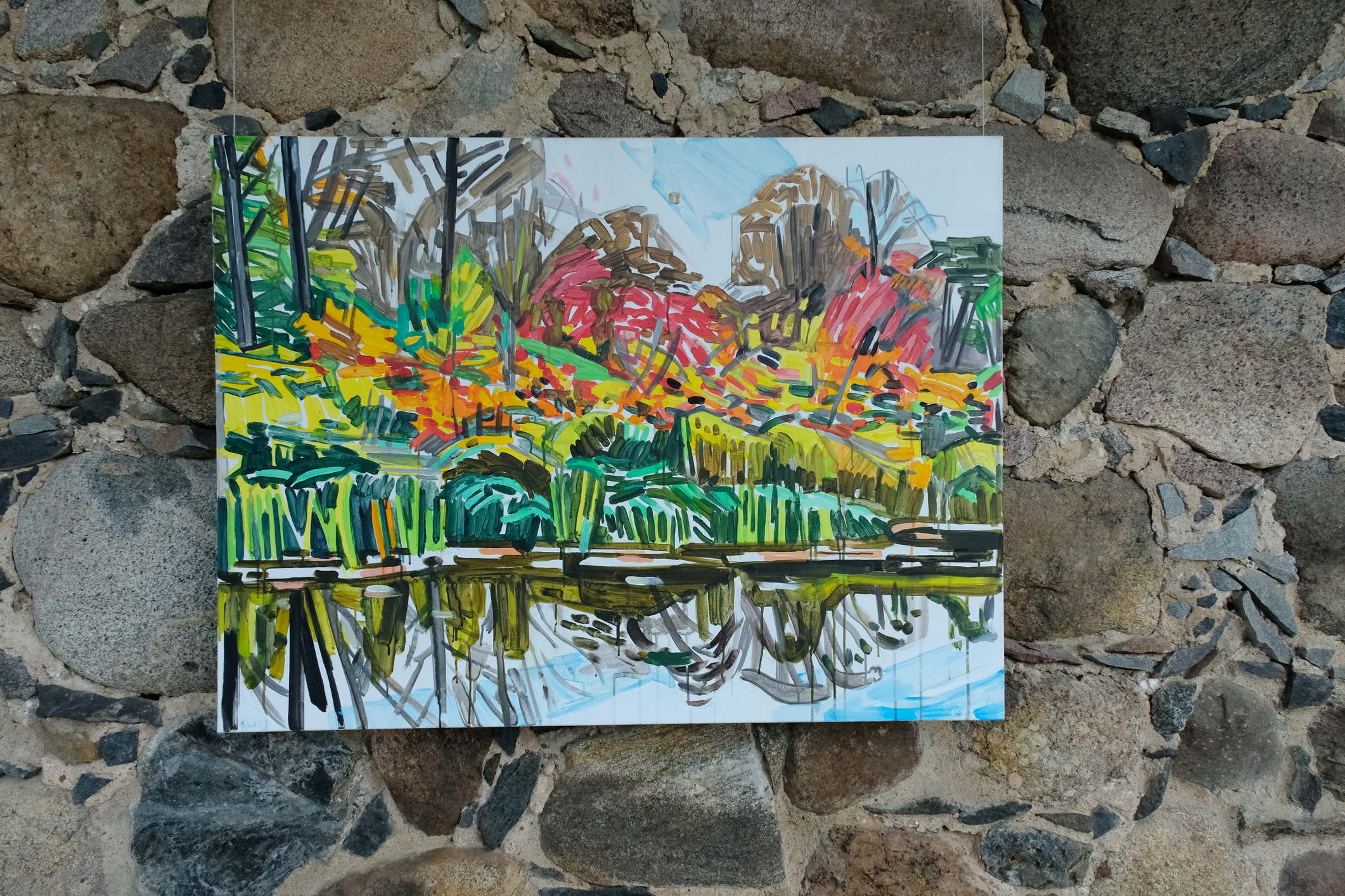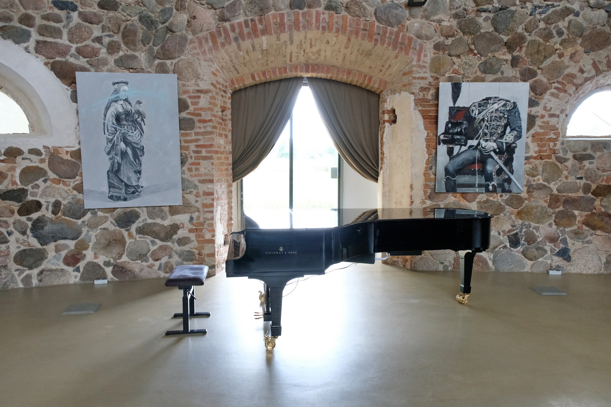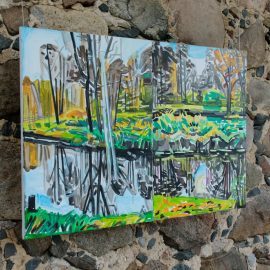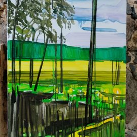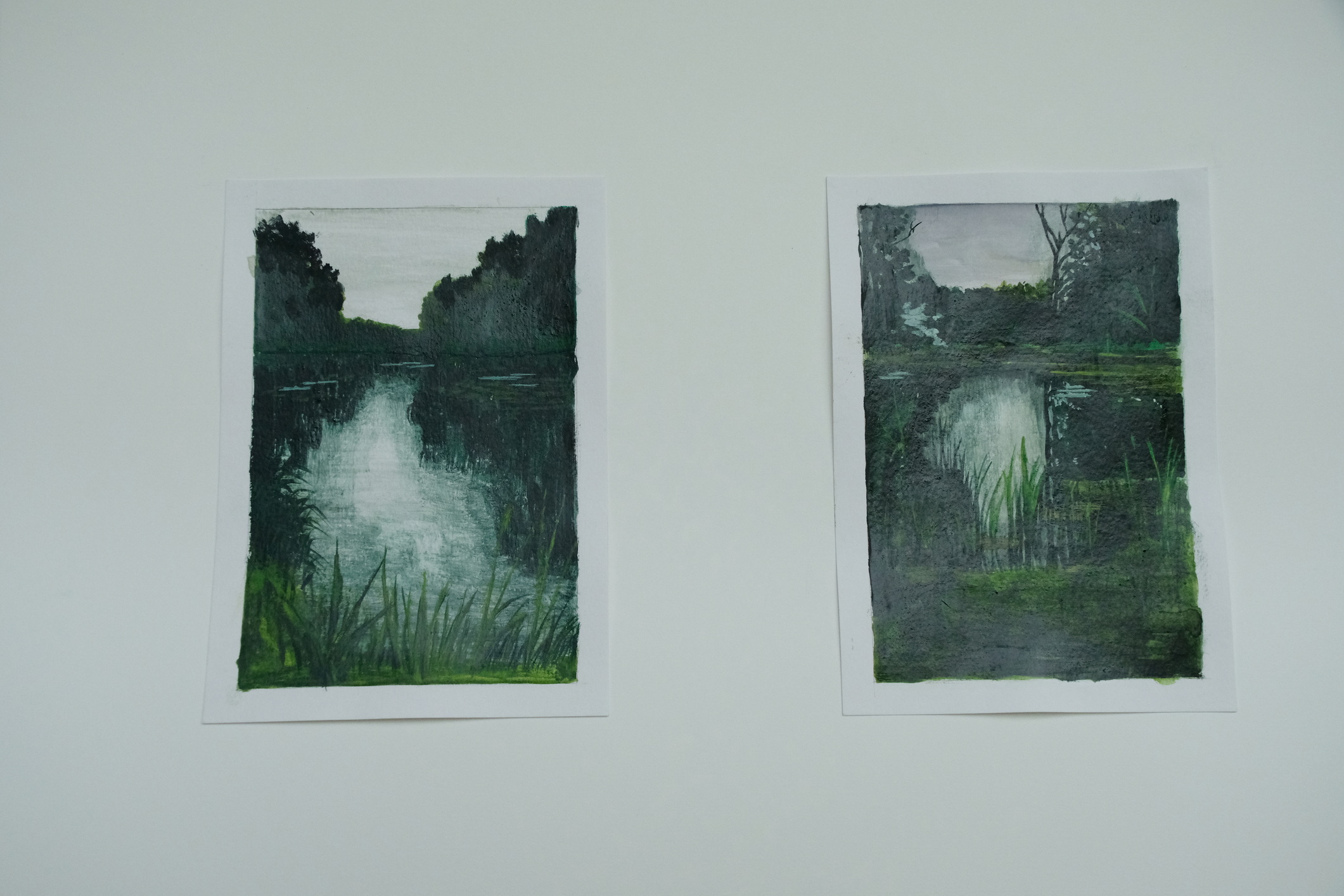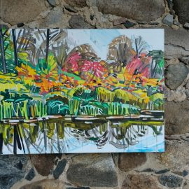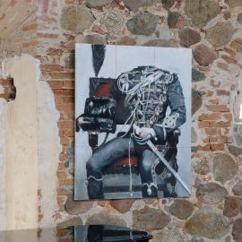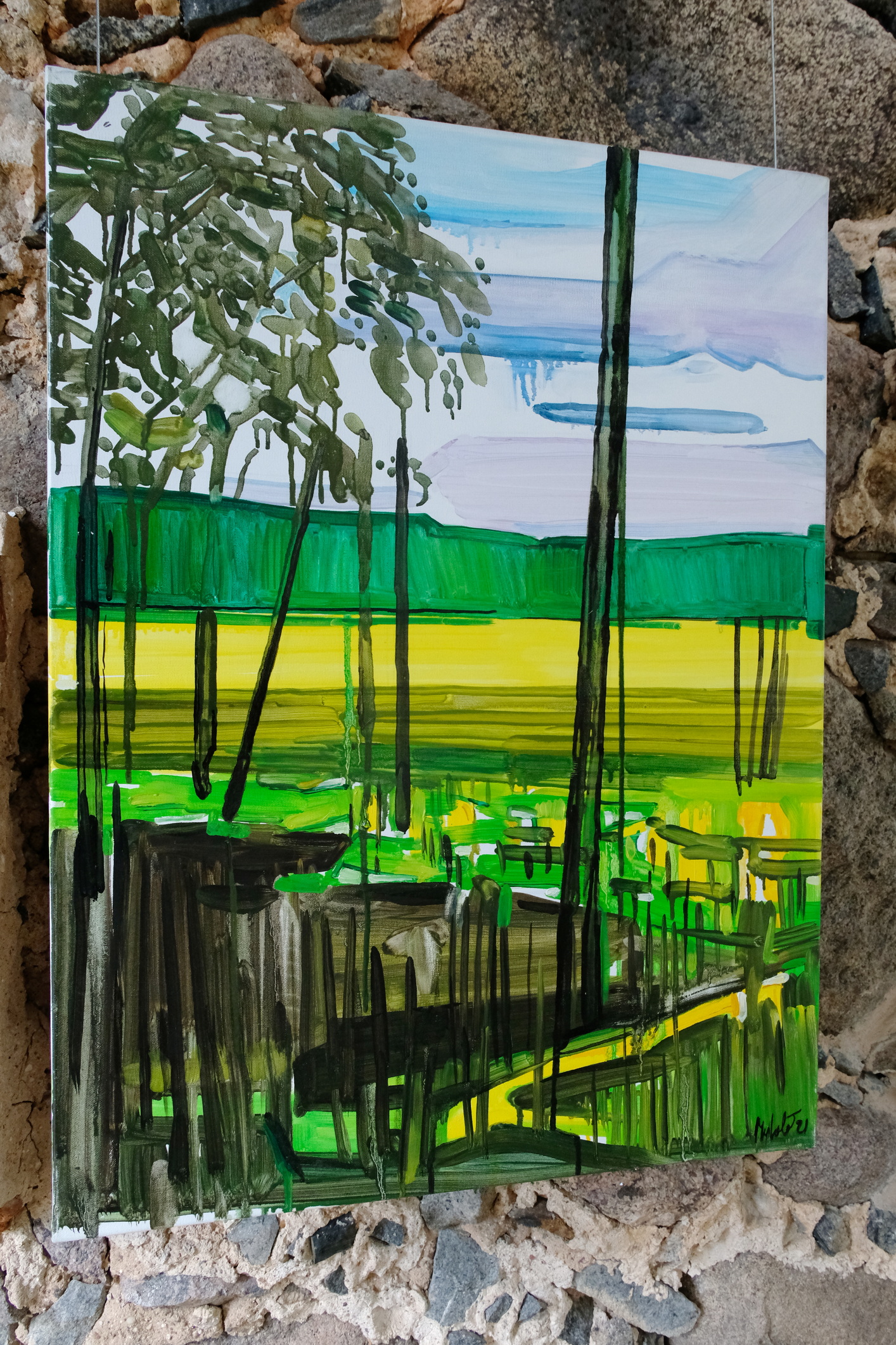 Meno rezidencijoje „Skambančios drobės“ menininkų sukurti darbai įsikūrė parodos ekspozicijoje Paliesiaus dvaro „Pasagos“ salėje. Kiekvienas čia apsilankęs gali neskubėdamas ir atidžiai studijuoti menininkų Mykolės Ganusauskaitės, Ségolène Kan iš Prancūzijos ir Viktoro Paukštelio per aštuonis rezidencijos dienas realizuotus sumanymus. Mykolė ir Ségolène įkvėpimo savo kūrybai, peizažams ieško gamtoje. Menininkės daug keliavo po Paliesiaus dvaro apylinkes, fotografavo, žavėjosi laukine gamta, išlikusiais civilizacijos mažai paliestais kaimais, autentiškomis sodybomis, tvyrančiomis paslaptingomis pelkėmis…Parodos žiūrovai galės įvertinti, kaip krašto gamta skirtingai atsispindi menininkių kūriniuose. Menotyrininkės prof. Ramintos Jurėnaitaitės anotacija ir meistriškai pateikta darbų ekspozicija leis pajausti meno rezidencijoje tvyrojusią kūrybingą atmosferą, giliau suprasti sukurtus kūrinius. Tapytojas ir pianistas Viktoras Paukštelis, anot menotyrininkės, savo paveikslams skirtingai nei šios dvi menininkės, įkvėpimo ieško ne gamtoje, bet dailės istorijoje.