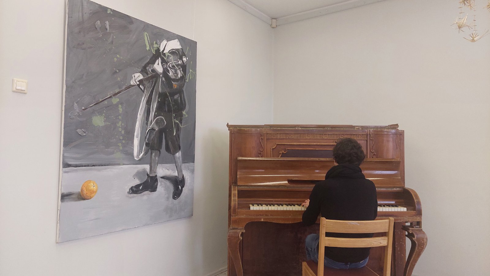 Paprašytas tarti keletą žodžių apie savo kūrybą, V. Paukštelis, kuris yra ir puikus pianistas, tiesiog pakvietė pažiūrėti jo paveikslų, o parodos atidarymo dalyviams padovanojo muzikinį kūrinį. Ir tai – neatsitiktinai: meno rezidencija „Skambančios drobės“ buvo skirta dviejų menų – muzikos ir dailės sintezei, dailininkai kūrė skambant muzikai, menotyrininkė tyrinėjo, kaip ji veikia menininkų kūrybą.