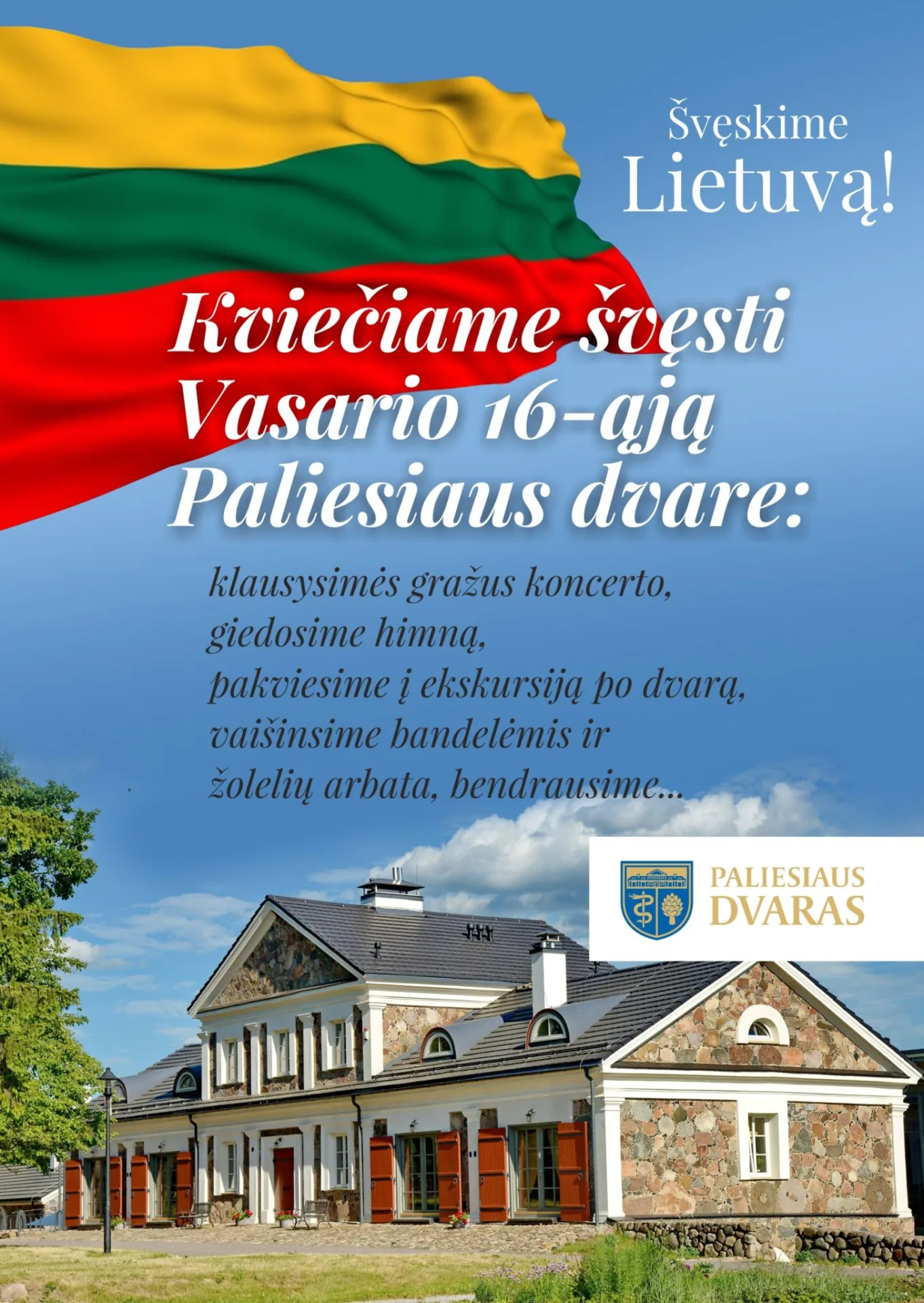 Šventės proga svečius vaišinsime bandelėmis ir Paliesiaus dvaro apylinkėse surinktų žolelių arbata. Kartu giedosime Valstybės himną, pabendrausime. Kviečiame tą dieną neskubėti namo, švęskime Lietuvą visi kartu.