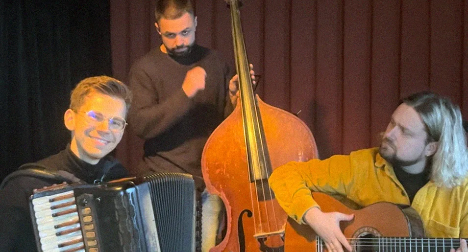 Pasirodys „TangoInJazz“ trio, trys garsūs, Lietuvoje pasižymėję atlikėjai – gitaristas Mindaugas Stumbras, bosistas Alex Kryshtal ir akordeonistas, kompozitorius, multiinstrumentalistas Vytenis Danielius, kuris koncerte atliks ir savo kompozicijų.