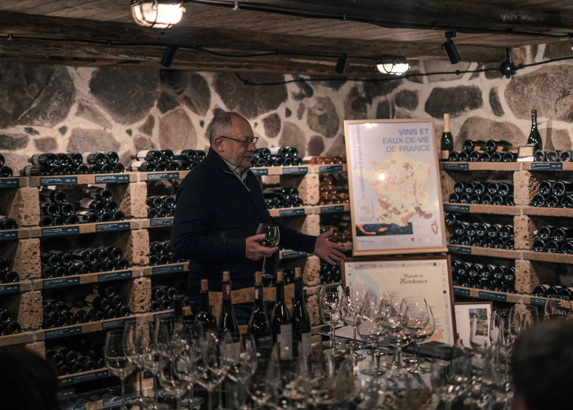 Rūsys įkurtas pagal visas vyno eksperto rekomendacijas. Kad būtų palaikoma tinkama drėgmė, vyno lentynos pagamintos Šveicarijoje iš drėgmę sugeriančio lavos akmens, lentynose pabarstytas smėlis. Taip išvengiama pelėsio, nepasikeičia vyno skonis.